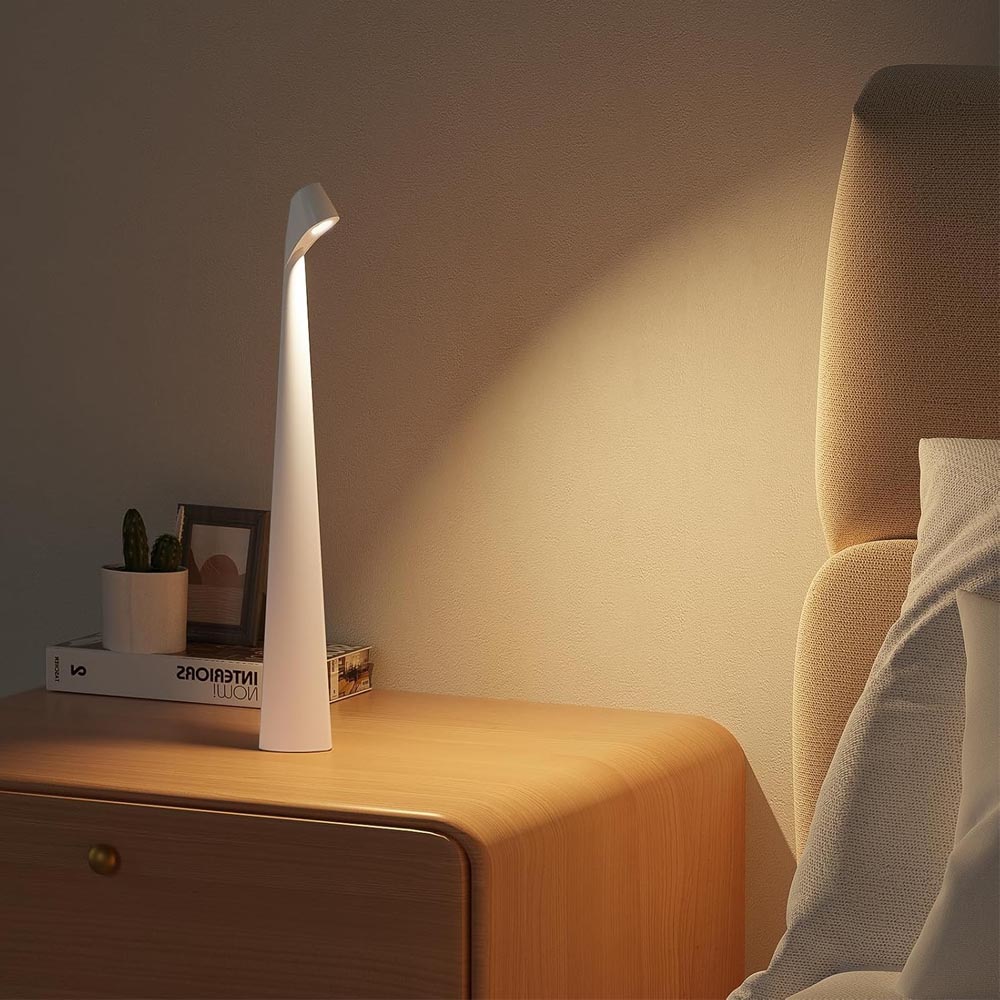 - Lámpara de mesa LED moderna recargable. Su diseño combina con diversos ambientes. - Cuenta con tres tonalidades y es dimerizable. Puedes ajustar la intensidad de la luz a su gusto mediante el interruptor táctil. - Su función inalámbrica te permite colocarla encima de consolas o mesas, sin necesidad de estar cerca de un toma de corriente. Con protección IP20, ideal para salas, dormitorios y restaurantes. - Incluye cargador USB. - Tiempo de carga: 5 horas / Duración de la carga: 18 horas dependiendo de la intensidad.