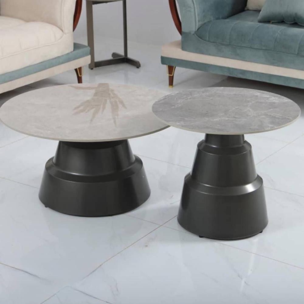 Estas son las mesas de centro Bonny, las cuales se caracterizan por su diseño moderno y minimalista con bases tipo pedestal. Están fabricadas en metal reforzado de alta calidad con recubrimiento en polvo para una excelente durabilidad. Cuentan con un diseño geométrico, minimalista y contemporáneo, con un tablero y base redondos en forma de pedestal. Vienen en un elegante contraste de colores blanco/crema y negro, como se ve en la imagen. Son versátiles y se pueden usar como mesas de centro anidadas ( nesting tables), mesas auxiliares o soportes decorativos.