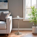 Mesa auxiliar redonda con un diseño moderno. Presenta un estilo moderno y elegante con una base escultural y una silueta esbelta. La mesa tiene un top de mármol y una base de metal con un acabado dorado o bronce. La base tiene un diseño retorcido o acanalado que le da un aspecto distintivo. Es ideal como mesa auxiliar, mesa de noche o soporte para plantas. Su diseño compacto la hace adecuada para espacios pequeños. Cómprala ya en Almacenes Marriott, la tienda online líder en Ecuador en decoración.