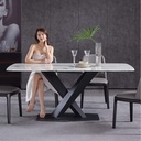 MESA DE COMEDOR DORY 6P TOP DE CERAMICA TIPO MARMOL CON BASE DE METAL NEGRA 160X90X76CM