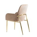 Silla de comedor con brazos, tapizada en terciopelo color taupe y con patas metálicas doradas. La silla está tapizada en terciopelo, que le confiere una textura suave y un aspecto lujoso y elegante. El color es taupe, una tonalidad neutra y sofisticada. Presenta un diseño moderno y elegante, con líneas limpias y un respaldo y asiento ergonómicos para mayor comodidad. La estructura es robusta y resistente, con patas metálicas de acabado dorado que añaden un toque de glamour y estabilidad. El asiento y el respaldo están acolchados para proporcionar una experiencia de asiento confortable. Su diseño la hace adecuada para diversos estilos decorativos, desde clásicos hasta modernos, y puede ser utilizada en el comedor, sala de estar o incluso en una oficina. Almacenes Marriott es la tienda online líder en Ecuador en decoración.