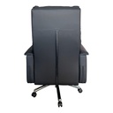 Es una silla de oficina gerencial reclinable, con un diseño que brinda comodidad y soporte. Está tapizada en poliuretano (PU) en un tono negro. Presenta un respaldo alto y acolchado, con secciones que proveen soporte lumbar y para la cabeza. Los brazos son anchos y también acolchados. La base es de metal cromado brillante con cinco ruedas, lo que indica que es una silla giratoria y móvil. Requiere Armado.