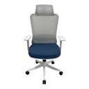 Silla escritorio giratoria c/ruedas reposacabeza gris/azul