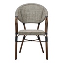 Transforma tus espacios al aire libre con la elegancia atemporal del estilo bistró. La Silla Oriana ha sido diseñada para quienes buscan un mobiliario de exterior que no solo resista el paso del tiempo, sino que también eleve la estética de su jardín, balcón o terraza. Características Principales: Material de Alta Resistencia: Construida con una estructura sólida de acero, tratada para soportar las condiciones climáticas del exterior sin perder su estabilidad. Tejido Polyrattan Duradero: Su acabado en polyrattan (ratán sintético) en colores café y blanco no solo ofrece un aspecto artesanal, sino que es fácil de limpiar y altamente resistente a la humedad y los rayos UV. Diseño Ergonómico y Compacto: Con dimensiones de 44x54x81 cm, es ideal tanto para rincones íntimos en un balcón como para juegos de comedor completos en patios amplios. Estilo Versátil: Su estética inspirada en los cafés parisinos encaja perfectamente en decoraciones modernas, clásicas o rústicas. ¿Por qué elegir la Silla Oriana para tu hogar? A diferencia de las sillas de plástico convencionales, el modelo Oriana ofrece una sensación de lujo y confort superior. Es la opción ideal para hoteles, cafeterías con terraza o para disfrutar de un café por la mañana en la comodidad de tu hogar. Especificaciones Técnicas Modelo: Oriana Uso: Exterior / Interior Material Estructura: Acero con acabado tipo madera. Tejido: Polyrattan (Ratán Sintético). Color: Café y Blanco. Medidas: 44 cm (ancho) x 54 cm (profundidad) x 81 cm (alto). Colección: Outdoors.