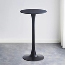 Mesa auxiliar o de bar de estilo tulipán, caracterizada por su base redonda y su pedestal central que se ensancha hacia la parte superior e inferior. Su diseño minimalista y elegante la hace versátil para diversos ambientes. Ideal para espacios pequeños, como mesas de café, mesas auxiliares, o para bares y cocinas.