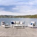 Set sala de exterior Ethan aluminio blanco y cojines gris