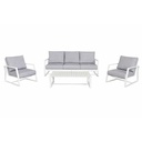 SET SALA DE EXTERIOR ETHAN 4PCS ALUMINIO BLANCO +COJINES S.T:214X85X86CM S.I:78X85X86CM M:120X66X36CM
