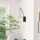 Aplique pared E27 Floe negro pantalla tela con cadena on/off