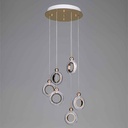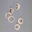 LAMPARA DOBLE ALTURA LED VITORIA DE METAL DORADO Y CRISTALES K9 CIRCULARES 6L 3000K 30W 40X200 CM