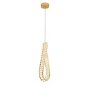 Lámpara LED colgante de diseño moderno y elegante. Presenta un diseño distintivo en forma de espiral o hélice, con elementos curvados que se entrelazan. Está fabricada con una estructura de metal en tono dorado y adornada con múltiples cristales que recubren las formas curvas. Incorpora iluminación LED integrada a lo largo de los bordes internos de las formas curvas, lo que proporciona una luz difusa. Su módulo led 3CCT permite la selección de la temperatura de luz de la luminaria entre luz fría, luz neutra y luz cálida. Su combinación de metal dorado y cristales le confiere un aspecto contemporáneo y sofisticado, ideal para espacios interiores como salas de estar, dormitorios o comedores.