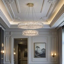 LAMPARA COLGANTE LED DIANA DE ACERO DORADO 2 AROS CON CRISTALES K9 3TONS 82W 80X40X120CM