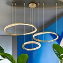 LAMPARA COLGANTE LED ZION DE 3 AROS ALUMINIO DORADO BRILLANTE 78W 3000K 80X100 CM