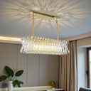LAMPARA COLGANTE ZIA RECTANGULAR DE ACERO DORADO CON CRISTALES K9 14L E14 100X34X24-100CM