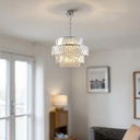 LAMPARA COLGANTE YIM DE ACERO CROMADO CON CRISTALES K9 12L E14 55X55X38/120CM