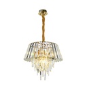 LAMPARA COLGANTE APRIL DE ACERO DORADO CON CRISTALES K9 7L E14 43X43X38/120CM