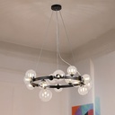 LÁMPARA COLGANTE RHYNA DE METAL NEGRO Y ESFERAS DE VIDRIO CLEAR 15L G9 85X120 CM