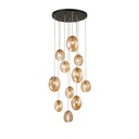 LAMPARA COLGANTE SCALLOPS DE METAL BRASS Y TULIPAS AMBAR 11L G9 53X145 CM