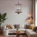 LAMPARA COLGANTE MORRISON DE METAL NIQUEL/WOOD 6L E12 41X79CM