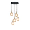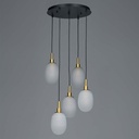 LAMPARA COLGANTE OVELLA, VIDRIO BLANCO / BASE NEGRA 5L E14 42X120 CM