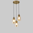 LAMPARA COLGANTE GABY REDONDA DE METAL BRASS Y VIDRIO AMBAR 3L E27 30X30X100CM