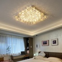 LAMPARA DE TUMBADO LED JOSS DE ACERO DORADO Y CRISTALES K9 3 TONS 2X40W 40X40X8 CM