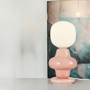 Lámpara de mesa E14 Kyoto de ceramica rosa vidrio blanco
