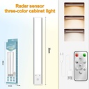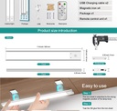 Ideal para walking closets, armarios, anaqueles de cocina, cajones, baños, dormitorios, pie de cama, escaleras, pasillos. Esta luminaria cuenta con las siguientes características: *Modo siempre encendido: Presiona el botón ON del control remoto. *Modo sensor de noche: Presiona el botón Modo noche en control remoto. La luz se encederá cuando el ambiente está en oscuridad y detecte movimiento humano. *Modo sensor de dia: Presiona el botón Modo día en control remoto La luz se encederá cuando detecte movimiento humano, no necesariamente debe haber oscuridad. *Modo timer: Preciona botón 15Min o 30Min. La luz se apagará automáticamente pasado el tiempo. Con modo de sensor de movimiento, se encienden automáticamente cuando se detecta movimiento humano y se apagan automáticamente después de unos 15 segundos sin detectar movimiento. Ya no tienes que preocuparte por tropezar en la oscuridad tratando de encender el interruptor. El modo detección es de 120º y hasta 3 metros de distancia al sensor. * 3 temperaturas de luz (cálida, fría, neutra). Presiona el botón de en el control remoto, o el botón del aplique 2 veces para ir cambiando la temperatura de luz. * Brillo ajustable. Mantén presionado el botón del aplique, o presionar botones (+) (-) en el control remoto.para ajustar el brillo deseado. Esta luminaria tiene memoria, por lo que quedará fijada la temperatura de luz y el ajuste del brillo que seleccionaste cuando vuelva a encender. *Recargable: Cuenta con una batería recargable de 1500mAh 5V y cable Usb tipo C (sin adaptador). El tiempo de carga es de 3 horas. La duración de la carga es de hasta 23 horas en modo sensor. Instalación: Esta luminaria cuenta con 2 adhesivos 3M, de un lado se pega a la superficie donde se desea instalar y del otro lado es metal que se adhiere de forma magnética a la parte posterior de la luminaria.