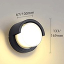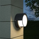 Aplique de pared LED de diseño moderno y circular, de color negro. Con luz LED integrada que permite la selección de la temperatura de color. Con grado de protección IP65, es resistente a la intemperie, adecuado para exteriores.