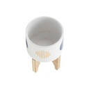 SET X2 PORTAMACETAS DE DISEÑO DE CIRCULOS Y PATAS DE MADERA BLANCO/AZUL/DORADO 13CM/20CM