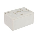 CAJA DECORATIVA DE MARMOL BLANCO CON DISEÑO DORADO 15CM