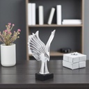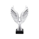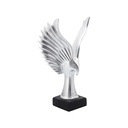 FIGURA DECORATIVA AGUILA DE RESINA COLOR PLATEADO CON SOPORTE NEGRO 36CM