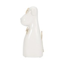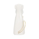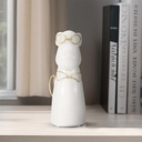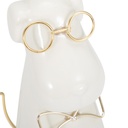 FIGURA DECORATIVA CACHORRO DE CERAMICA BLANCO CON GAFAS Y LAZO DORADO 18CM